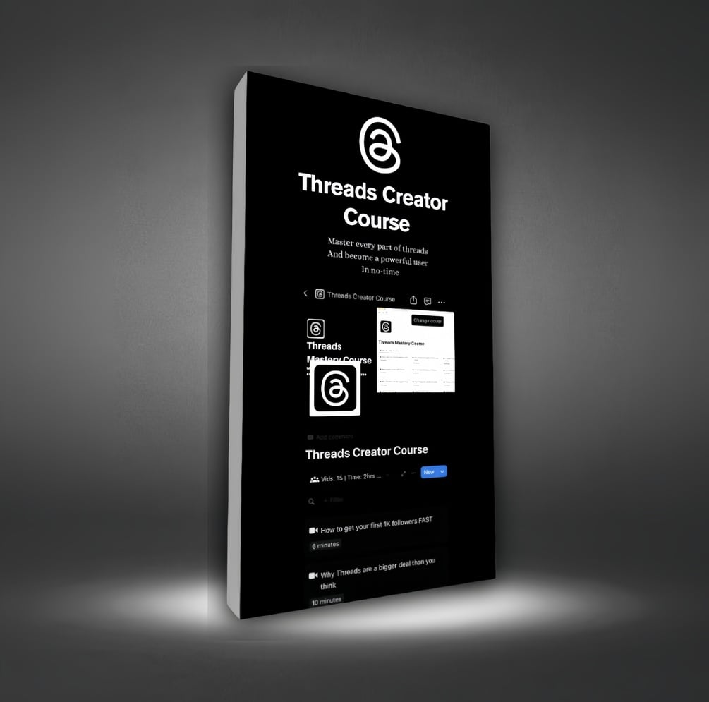 “Thread Creator Course” is a quick and powerful course packed with over 2 hours of hand-picked YouTube videos (15 in total) all curated to help you go viral, gain followers, and master the platform without wasting time.