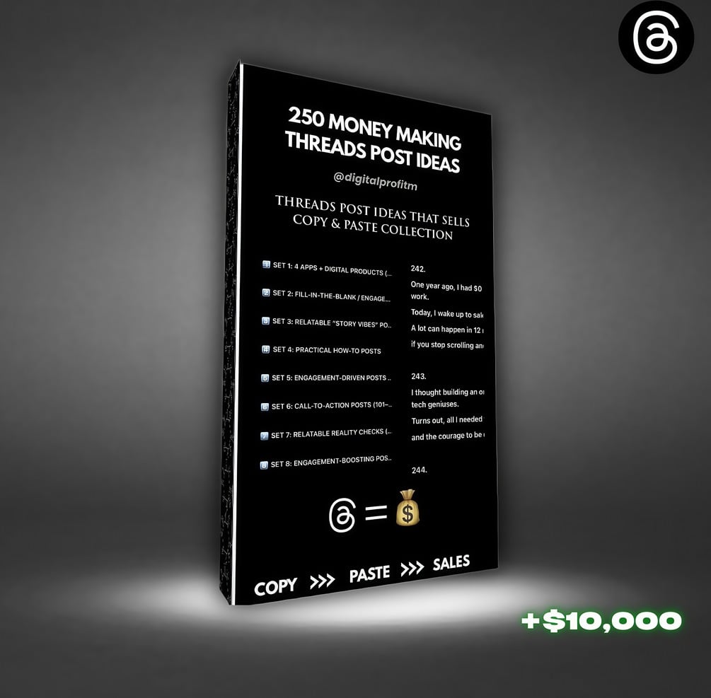 This pack gives you 250 high converting Threads post ideas you can use to grow your audience, get more engagement, and make sales without spending hours brainstorming or overthinking.